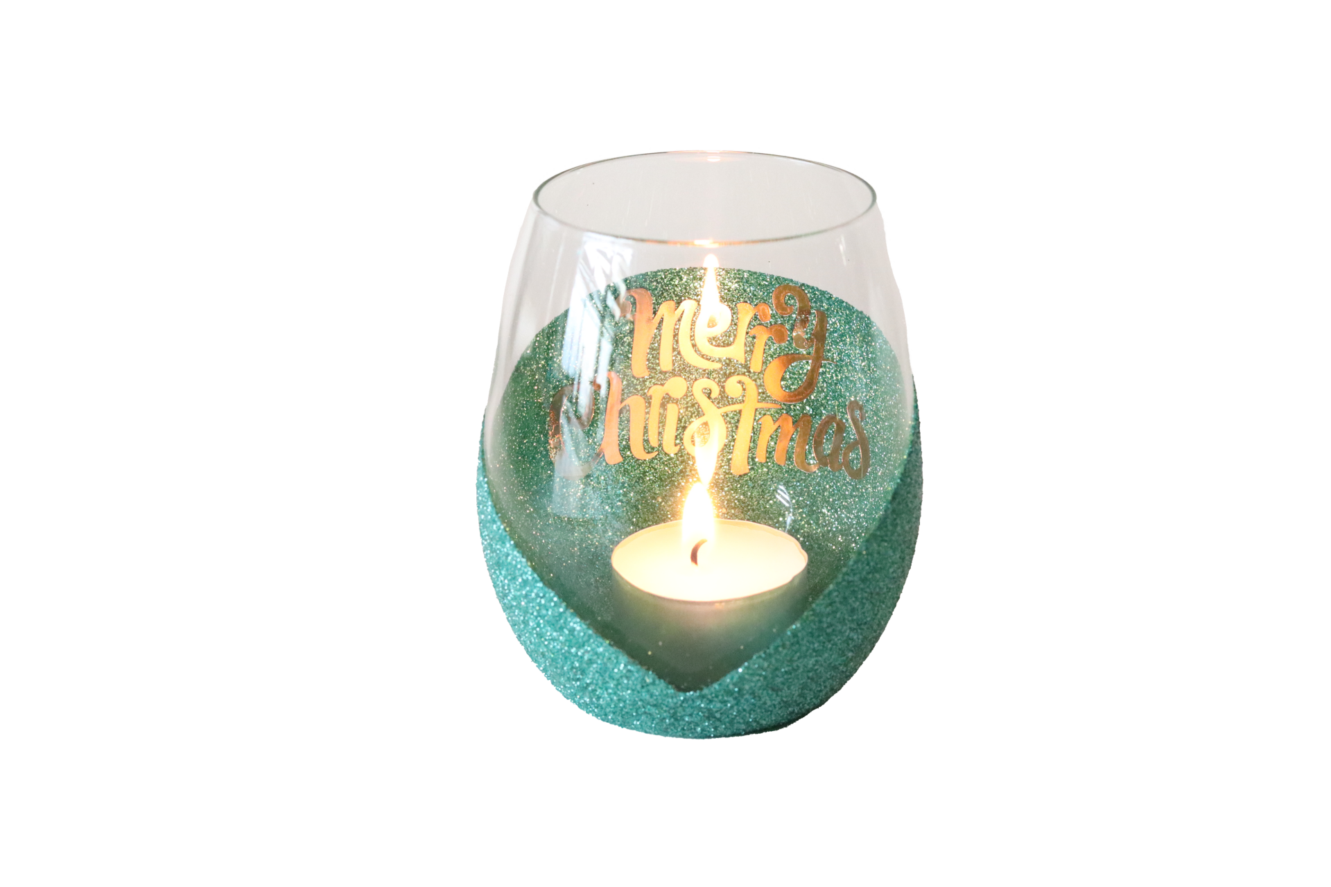 Kerst Glitterglazen | Waxinelichthouder | Turquoise